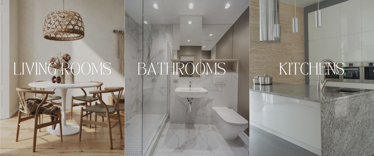 تصميم داخلي عصري لمطبخ واسع وغرفة معيشة في النهار